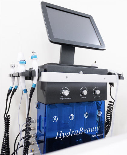 Το μηχάνημα Hydrabeauty® διαθέτει εννέα διαφορετικές κεφαλές που χρησιμοποιούνται στα διάφορα στάδια της θεραπείας, πάντα προσαρμοζόμενα στις ανάγκες κάθε προσώπου.